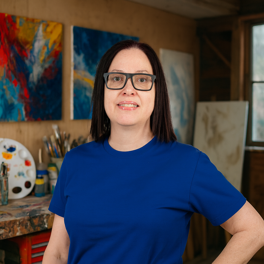 Yanick Cyr est une artiste visuelle queer basée à Montréal et originaire du Saguenay. Formée en design graphique, animation 2D/3D et UX-UI, elle se perfectionne à l’UQAM en suivant des cours avancés de peinture acrylique. Forte de plus de vingt ans d’expérience comme directrice artistique en agence, elle développe une pratique personnelle où rigueur, créativité et engagement se rencontrent.